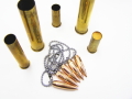 ライフル弾頭、長さ28mm、直径約7.6mm。重さ約10g。ブラスチェーン付。(通穴)リング内径約3.5mm。